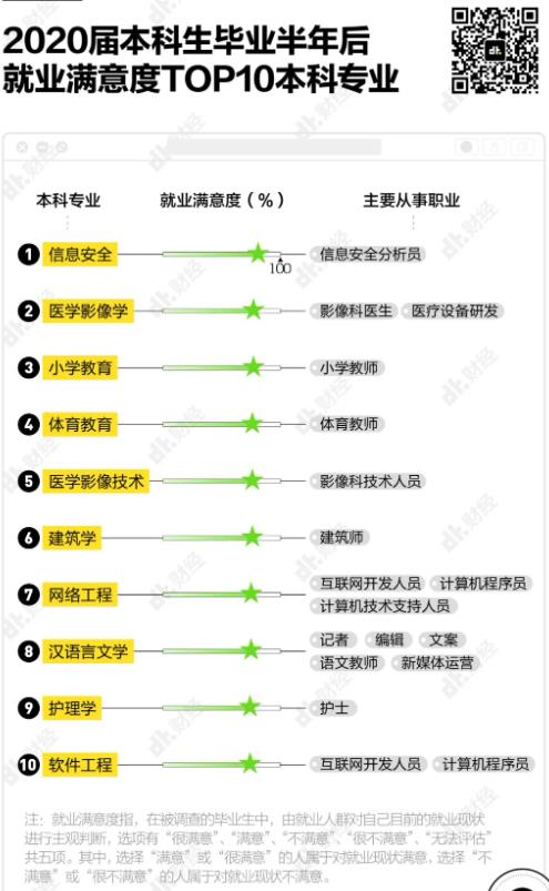 比如小學(xué)教育、漢語言文學(xué),都進(jìn)入了本科生畢業(yè)半年后職業(yè)滿意度排行榜前10名,分別排在第3和第8。